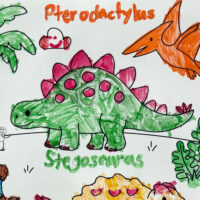This exciting prehistoric design features Tyrannosaurus Rex, Brachiosaurus, Stegosaurus, Triceratops, Ankylosaurus, and Pterodactyl, inviting kids to explore the world of dinosaurs while they color and imagine.