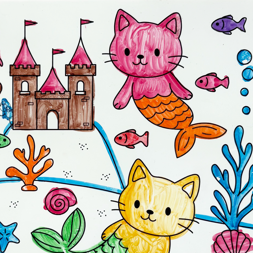 This playful underwater world features adorable mercats, ocean friends, and a magical sea castle waiting to be brought to life with color.