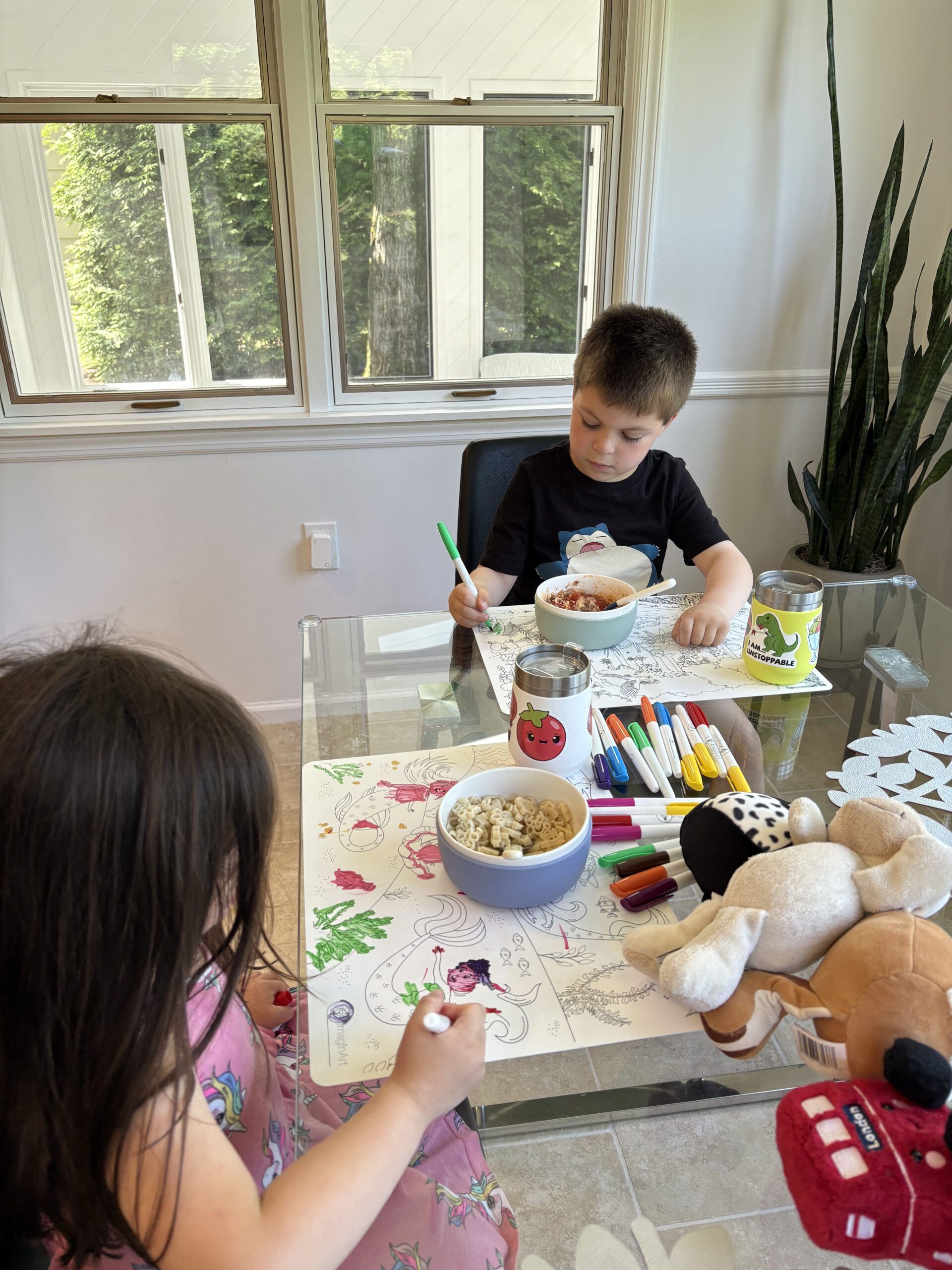 • Plates Stay Put – Non-slip silicone placemat keeps dishes steady so nothing “goes overboard.”